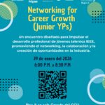 Invitación al evento Networking for Career Growth (Junior YPs), dirigido a profesionales en la industria y personas con estudios de posgrado interesados en fortalecer su red profesional y generar oportunidades de colaboración. 📅 29 de enero de 2026⏰ 6:00 p.m.